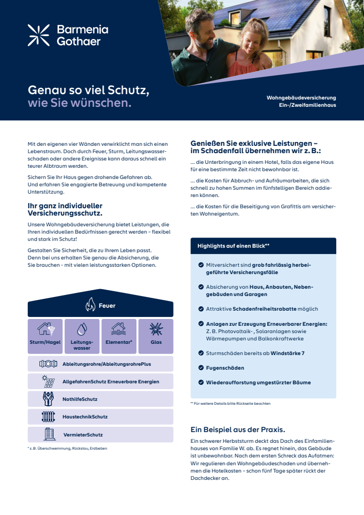 Versicherte erhalten mit den neuen Produkten vielfältige Gestaltungsmöglichkeiten. So bietet der VermieterSchutz beispielsweise zusätzliche Sicherheit für Vermieterinnen und Vermieter. Der Schutz umfasst unter anderem Leistungen bei erweitertem Mietausfall. Über den AllgefahrenSchutz werden Anlagen zur Erzeugung erneuerbarer Energien unabhängig von der Gefahr abgesichert. Dieser Baustein eignet sich zum Beispiel, wenn in dem Gebäude Photovoltaikanlagen, Solaranlagen, Wärmepumpen oder Balkonkraftwerke verbaut wurden. Die Zusatzbausteine können flexibel an- und abgewählt werden.